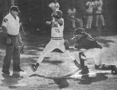 | Fair Oaks catcher Shawn Lucchesi tags a Lodi runner out at the plate during the American Legion State Championships in Yountville on Saturday. After an early Fair Oaks lead, Lodi went on to win the game by a score of 11-5. Photo by John Blenkle |